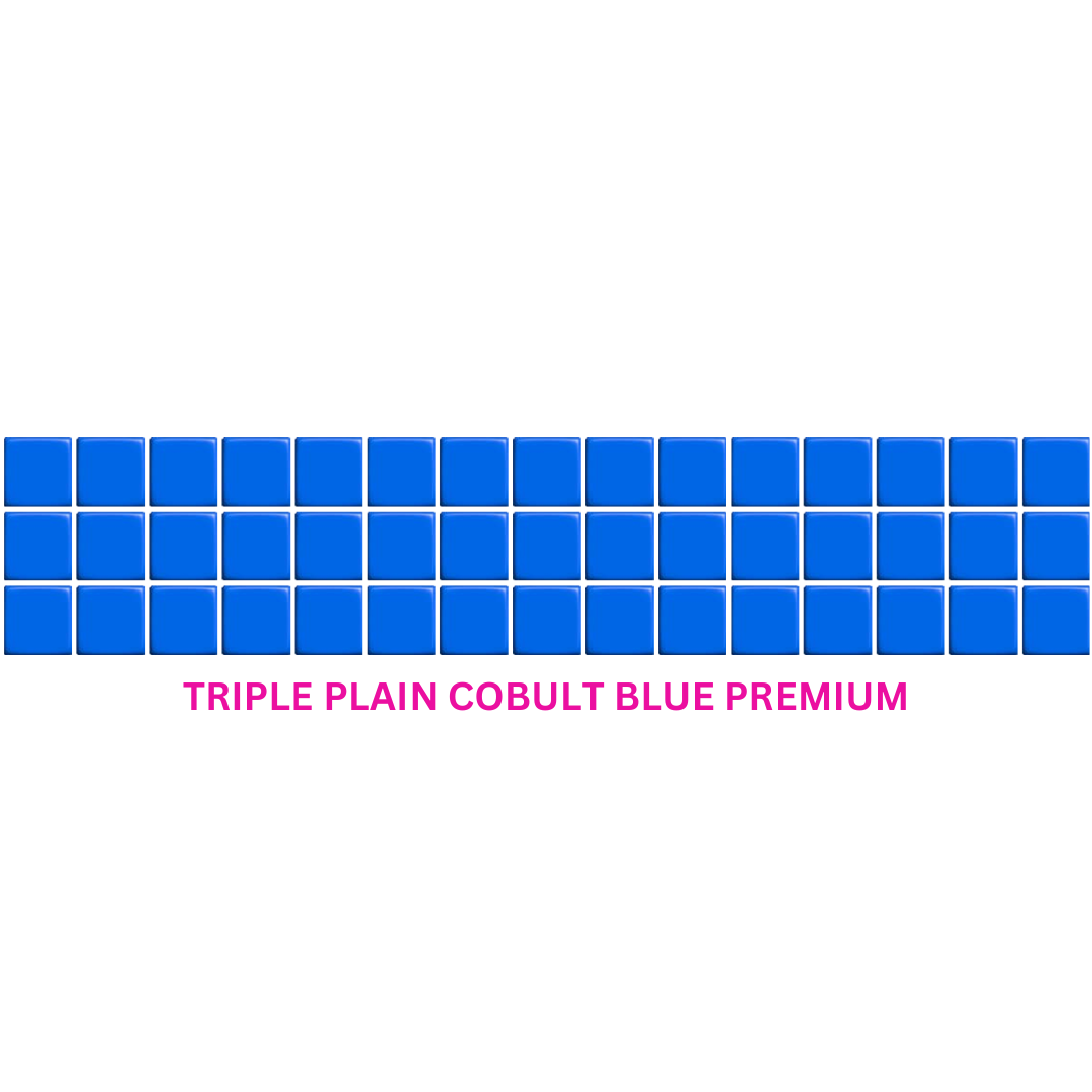 Enhance your pool interior with the POOL MOSAIC TRIPLE PLAIN COBALT BLUE PREMIUM (800mm × 160mm) — a digitally printed mosaic sheet designed for lamination into fibreglass pool shells and linings. Offering a refined plain pattern in bold cobalt blue, this product delivers the elegance of mosaic styling without the complexity, grout issues, or fragility of ceramic tiles.