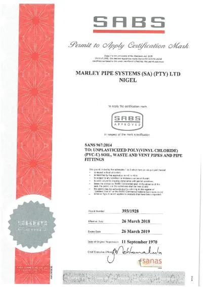 • Certification: S.A.B.S